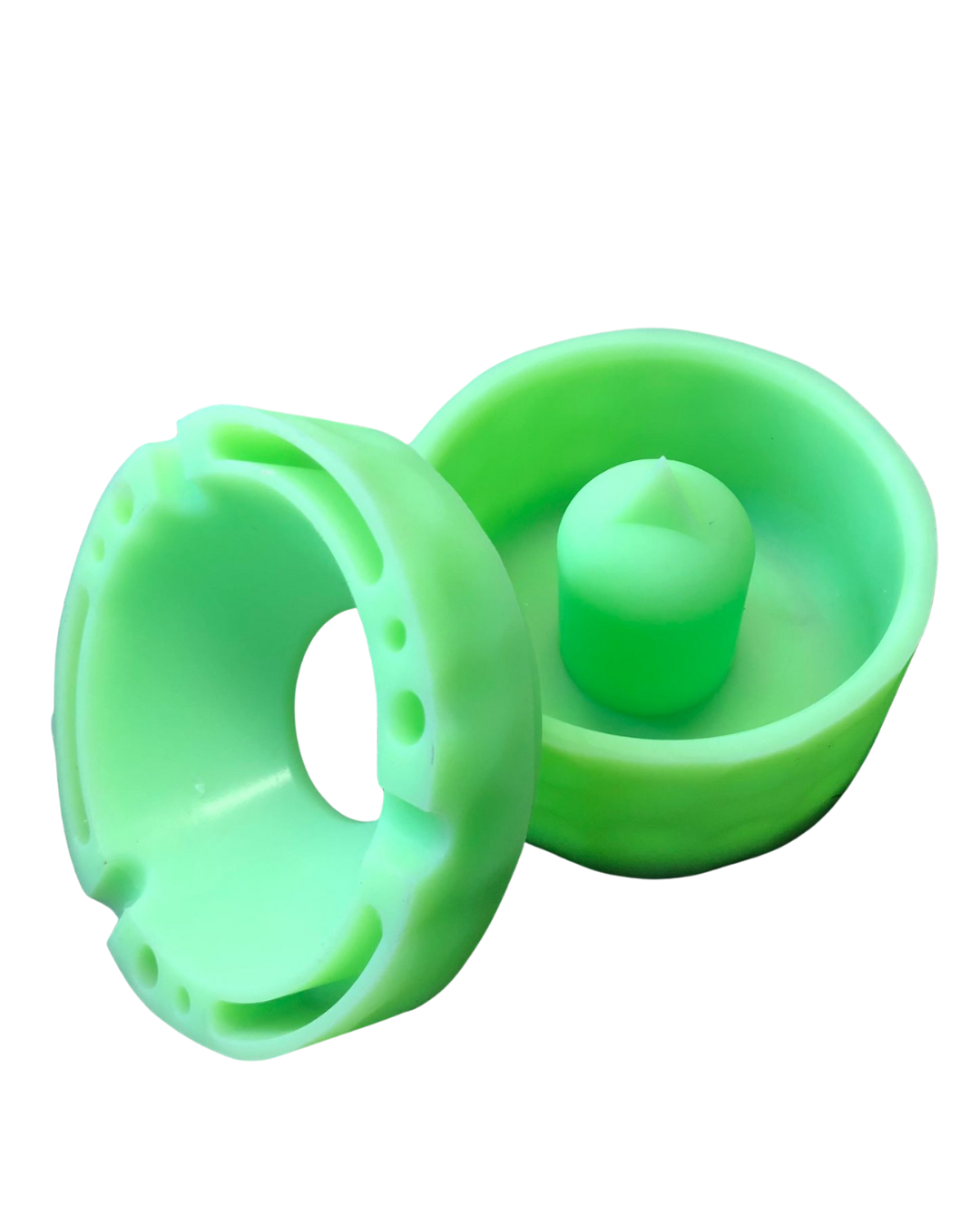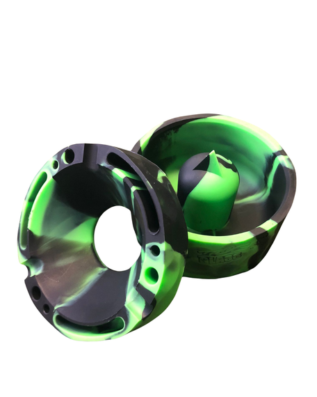 Introducing our TROG silicone ash tray! These ashtrays are easy to clean, are made from heat proof silicone and are BPA free. They feature a unique two tiered design. The raised center is perfect for tapping glass components such as cone pieces against the side to get rid of excess ash, and the holes in the sides are perfect for holding glass, tool and herb components.