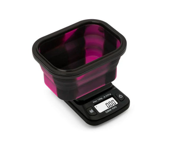 The ORIGINAL Silicone Bowl Scale includes a large collapsible silicone bowl and latching cover for incredible versatility. The silicone bowl contains and protects the scale when collapsed, keeping it safe from knocks and bumps. When fully expanded, the bowl provides a comfortably large volume for you to weigh your items in. Results are easy to read from the extra-large LCD with green backlight. Built-in overload protection helps prevent damage to the scale. Other features include automatic Piece Counting, Power-saving Auto-Off after 3 minutes of inactivity, Tare/Zero feature for subtracting the weight of a container or expansion tray, and easy One-touch Calibration. Includes two AAA batteries.