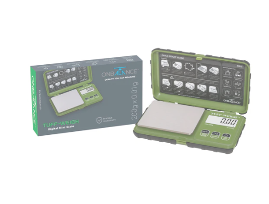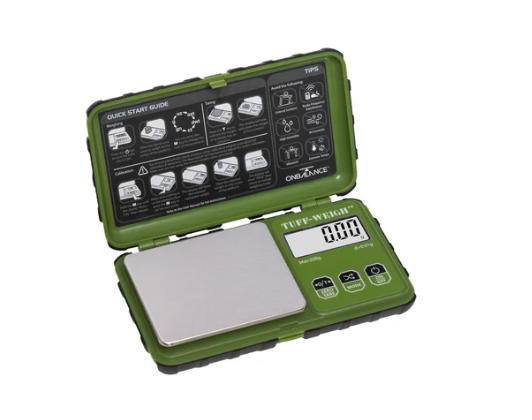 A new upgraded scale from On Balance this portable precision Tuff-Weigh digital scale is cut out for your toughest jobs! It's cram packed full of features such as: - 200 grams capacity, 0.01 gram resolution - Green hard plastic case with rubber grips - Extra-large 14mm display digits against a bright orange backlight - 6 weighing modes include grams, ounces, troy ounces, pennyweights, carats and grains - 76 x 59mm stainless steel tray - Selectable auto-off allows you to change the auto-off time to suit your needs - Detachable lid doubles as a tray. -Overload protection - Powered by 2 AAA batteries (included) - 10-Year Manufacturer's Warranty.