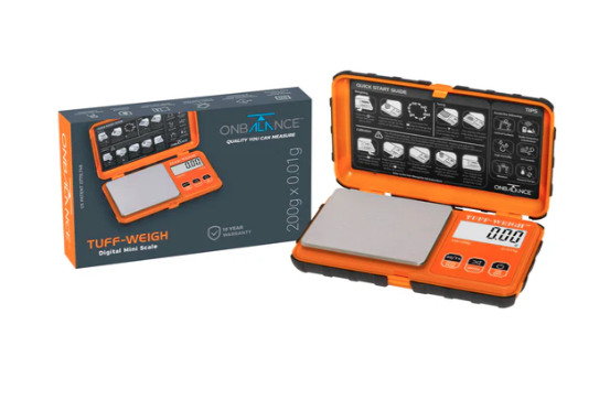 A new upgraded scale from On Balance, this portable precision Tuff-Weigh digital scale is cut out for your toughest jobs! It's cram packed full of features such as: - 200 grams capacity, 0.01 gram resolution - Orange hard plastic case with rubber grips - Extra-large 14mm display digits against a bright orange backlight...