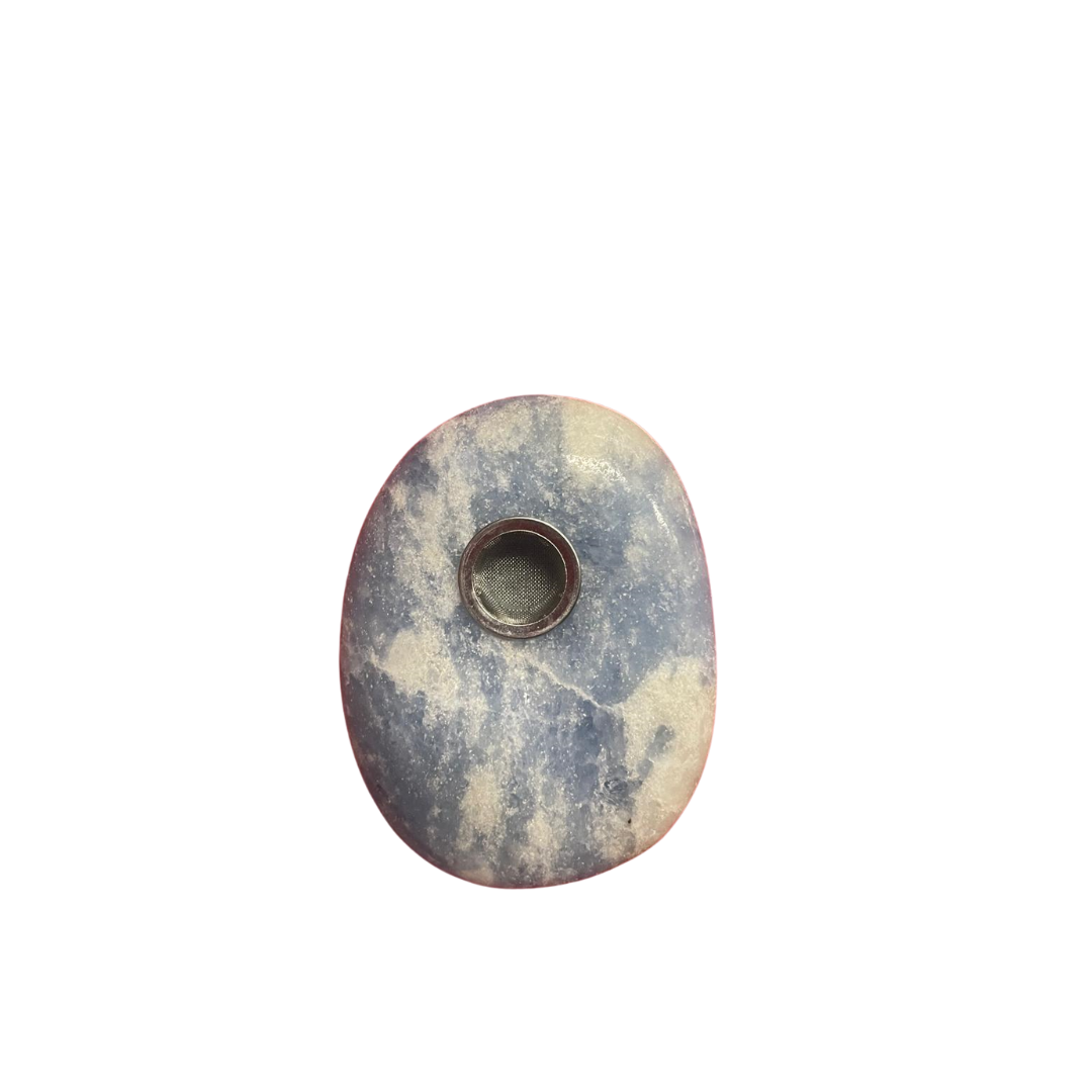 Semi-precious stone smoking pipes each have unique markings and can be used for meditation and relaxation.